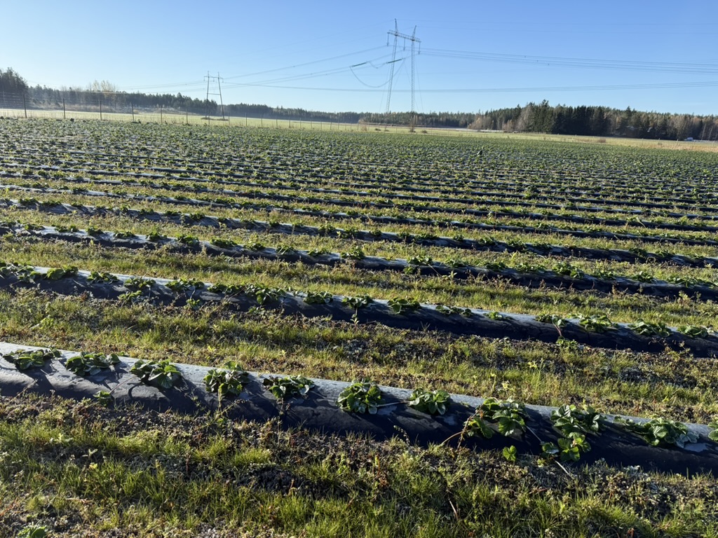 Ja tulipa sinne ensimmäinen hehtaari mansikoita istutettua jo loppukesästä (27.7.2025). Hyvin näyttää kasvavan:)